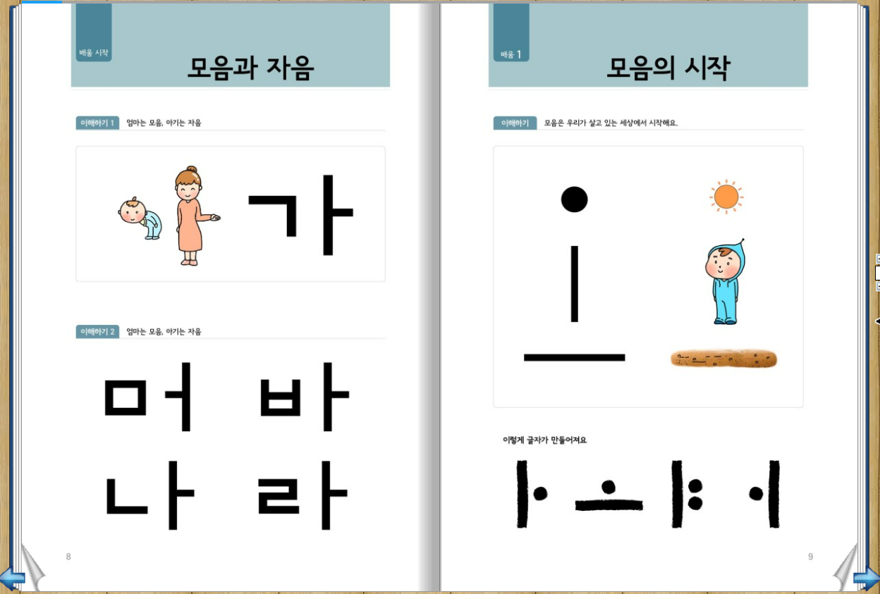 초기에 ㅏ, ㅓ, ㅡ, ㅣ등을 배울때